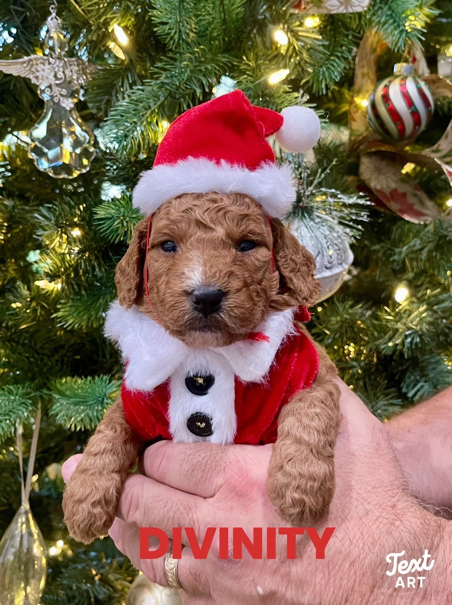 The puppies are here! Introducing the “North Pole Nibbles”litter of F1b Mini Goldendoodles. These yummy puppies will be ready for Christmas! They will be about 25-30 lb. As of 11-21-25, we have 4 spots available. There are 5 girls and 3 boys
