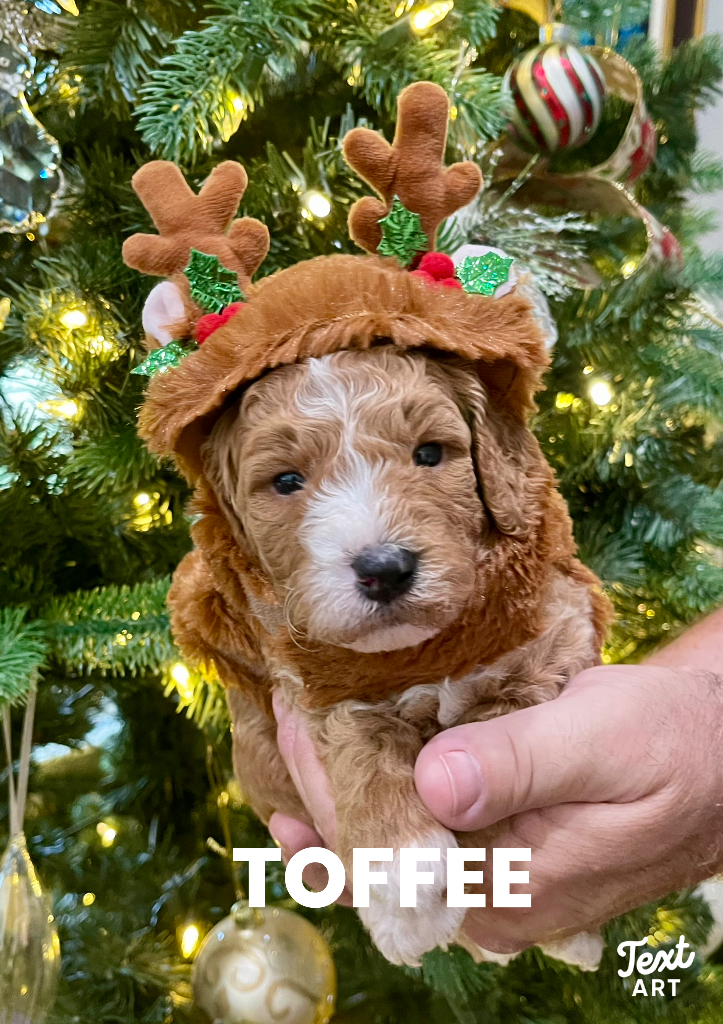 Please meet the “Starbucks Holiday Menu” Litter. We have 6 puppies. These are F1 generation. Three boys and three girls. They will be about 9-15 lb. We have two spots still available.